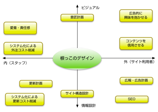 以下の例は「企業ホームページ制作」における、グラフィックデザインとシステム構築の考え方です。